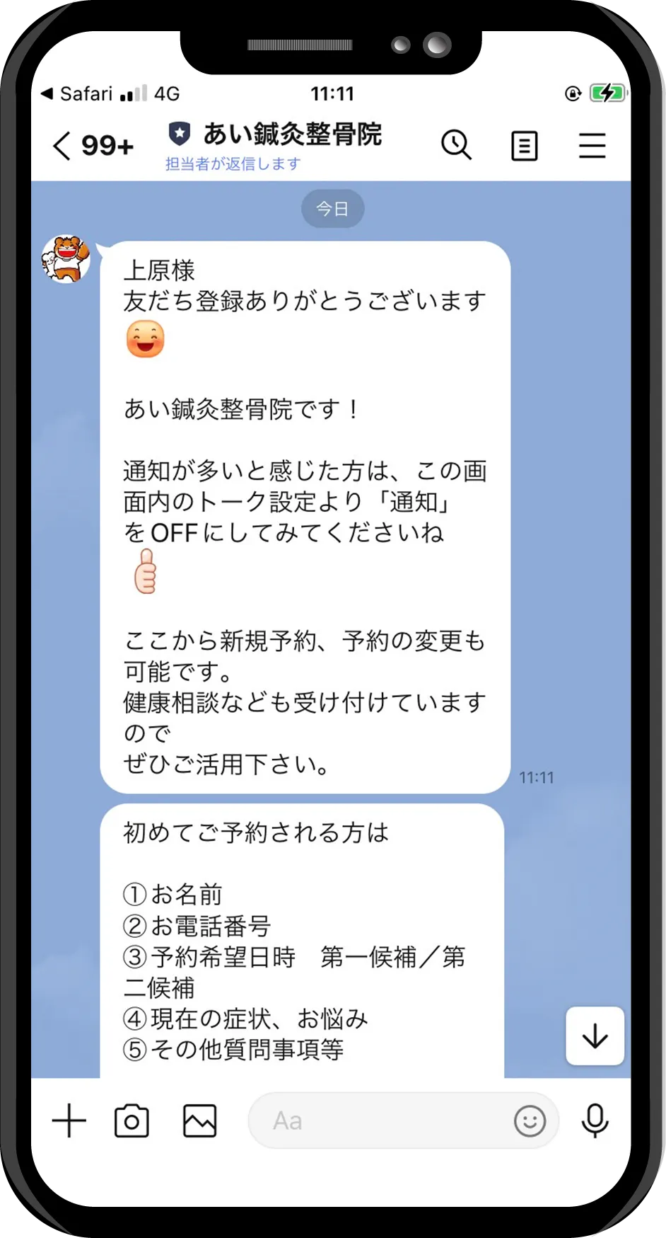 当院での施術が必要かどうかの客観的な判断をLINEでお伝えします。